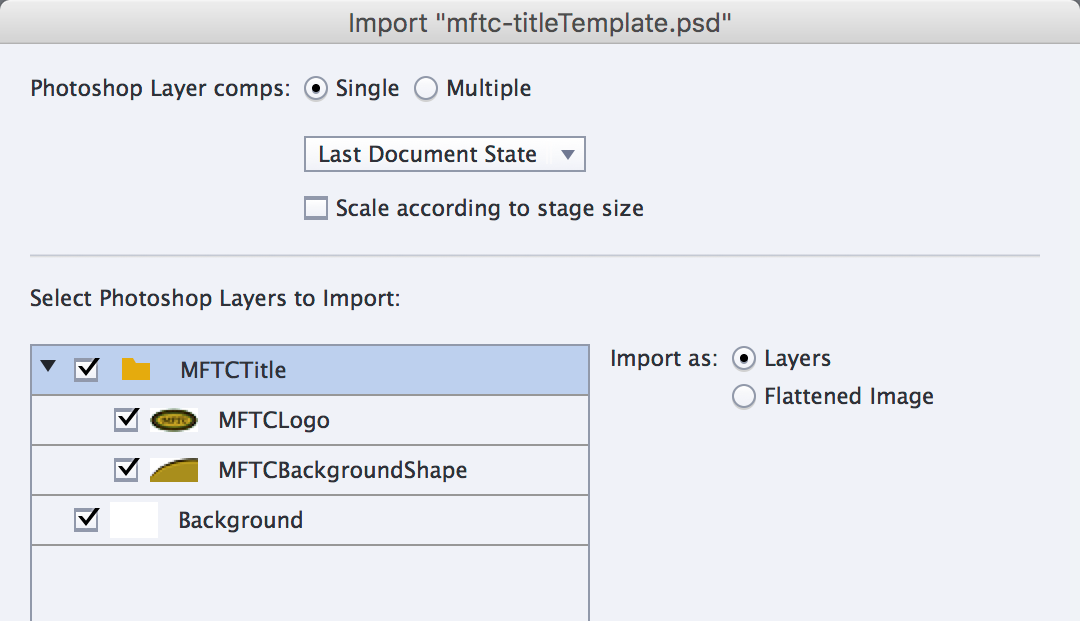 Importing the layers in Captivate