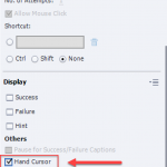 Globally you can turn on/off the display of the Hand cursor under the Actions tab in the Properties panel of the interactive object. See screenshot in attachment.