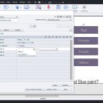 Now for phase 3, the exciting part. Finally, we will want to create the buttons, and give them both multiple states, and to give them interactions that can control everything in the project. The buttons in this project are just shapes. I drew a single rounded rectangle and typed a color into its text area. Then I checked the box to ‘Use as button.’ which instantly converts the shape into an interactive button, AND adds special states (layers) that are used for rollover effects and the button press state. You can edit these shapes – just as you did with the other states of image and text objects – by going to the state view and altering the color and font properties of the shape for each state. Finally, I added a state – a special built in state, called ‘Visited.’ This state is displayed when the button has been used by the current learner.