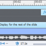 Audio files need to be loaded at the start of each slide. To force keeping the audio clips ‘seen’ as individual clips, not part of a project audio file, having a small gap at the start and/or the end of its timeline is the solution. Sorry for that long explanation, but I don’t like to offer just a solution without any explanation. Doing so, will solve two issues:
