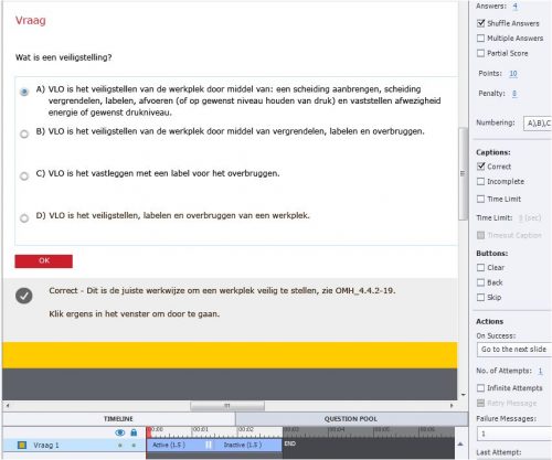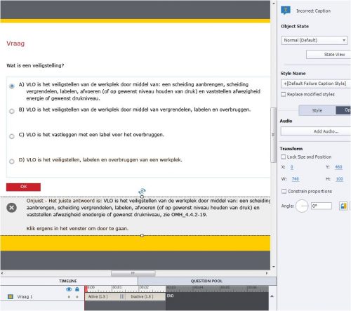 Is it because I’ve chosen to show the Correct caption and have inserted an Incorrect caption on the quiz slide? Has it got something to do with the time line?