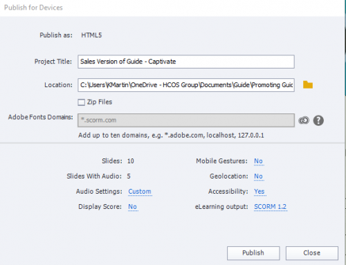 When trying to publish file in captivate – I am only given the HTLM5 Option to “save as” I also cannot publish to YouTube or My Computer. None of the message boards address how to change the publishing settings related to this. Please help.