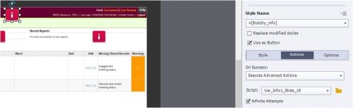 This part of the process I have been able to achieve using Execute Advanced Actions, however the next stage I would like to implement is to not allow the ‘Next’ button to be executable until all information buttons have been previewed. This part I can’t seem to get working.