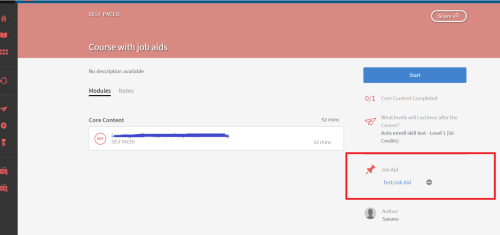 The admin/author has added a job aid to the course but when viewed as a learner under Certification (which is how learners take the course), they cannot see the job aid.