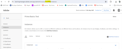 Ex: https://learningmanager.adobe.com/app/admin#/course/7113644/instances
