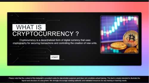 This training module provides a comprehensive introduction to cryptocurrency, a decentralized form of digital currency. You will learn how cryptocurrency uses cryptography to secure transactions and control the creation of new units. The course will cover the basics of how cryptocurrencies work, the importance of decentralization, as well as the advantages and risks associated with their use.