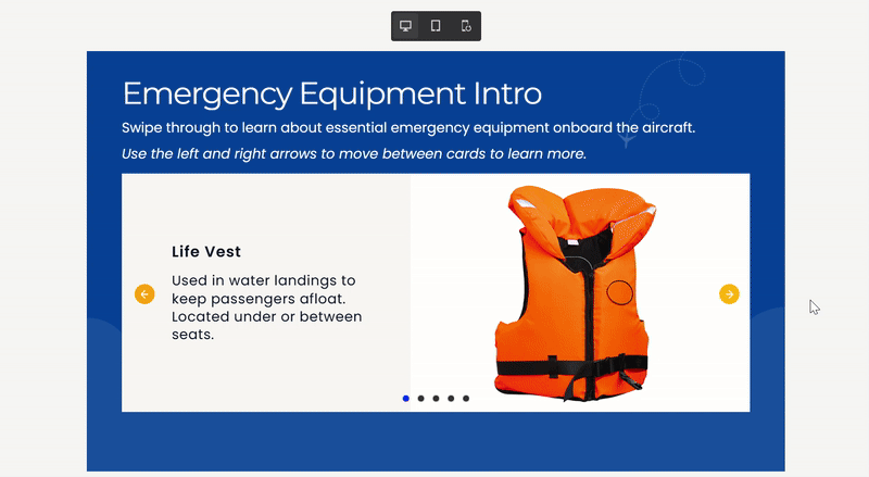 A carousel component is an interactive widget that allows learners or viewers to scroll through multiple pages (or slides) within a single content block. Think of it like a rotating banner or deck-each page can contain an image, headline, body text, and even interactive buttons. This feature is perfect for showcasing a series of related items, such as a product line, step-by-step instructions, or customer testimonials.