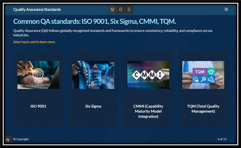 Header and footer branding blocks in Adobe Captivate let you place logos, colors, and key brand elements across every slide without cluttering the main learning area. They help maintain consistency, enhance professionalism, and keep branding visible – while allowing learners to stay focused on the content.