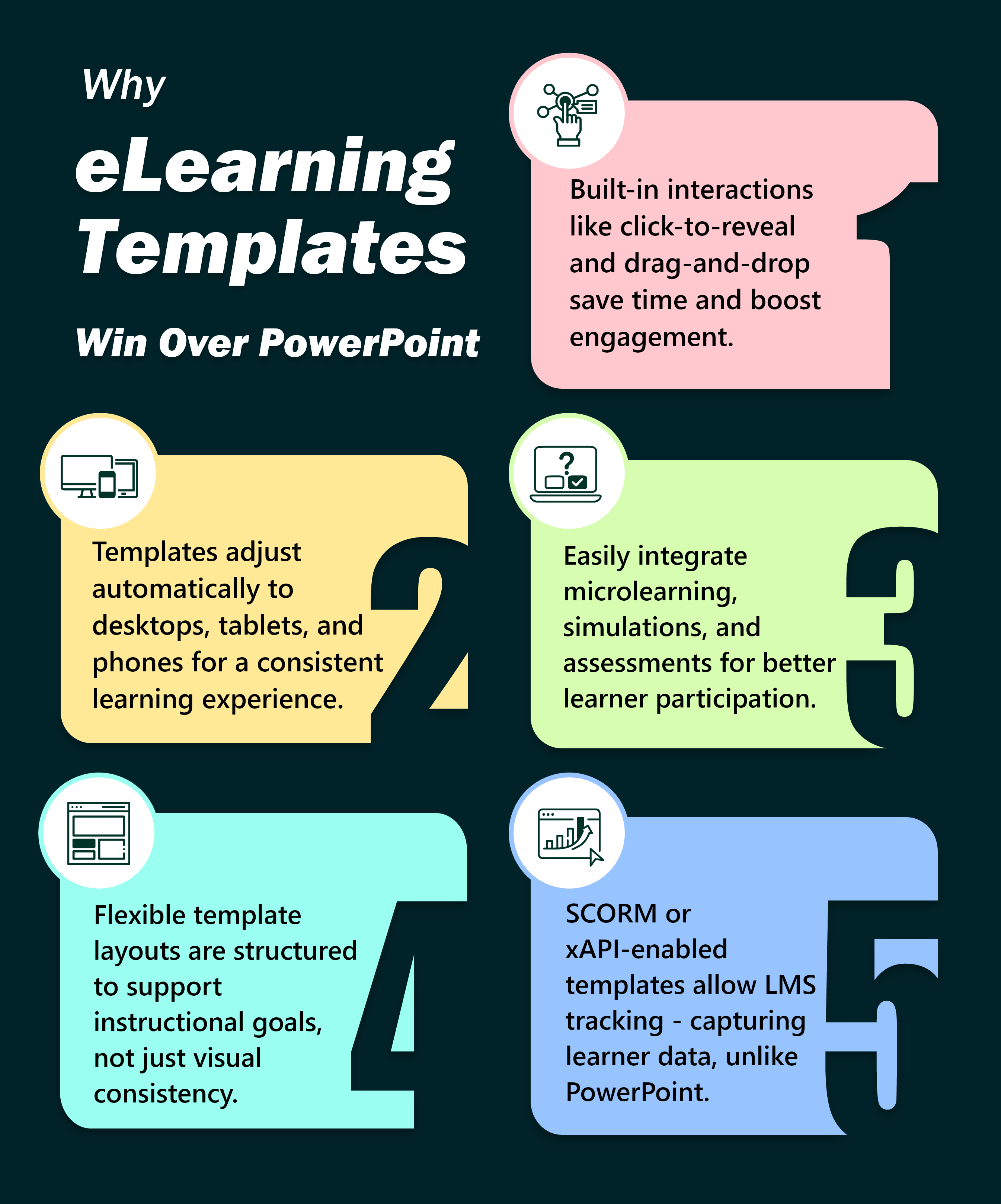 When you begin designing an eLearning course, it might feel easy to pick a PowerPoint template, add a title, and drop in a few bullet points. But there’s one big problem: PowerPoint is made for presentations – not for learning.