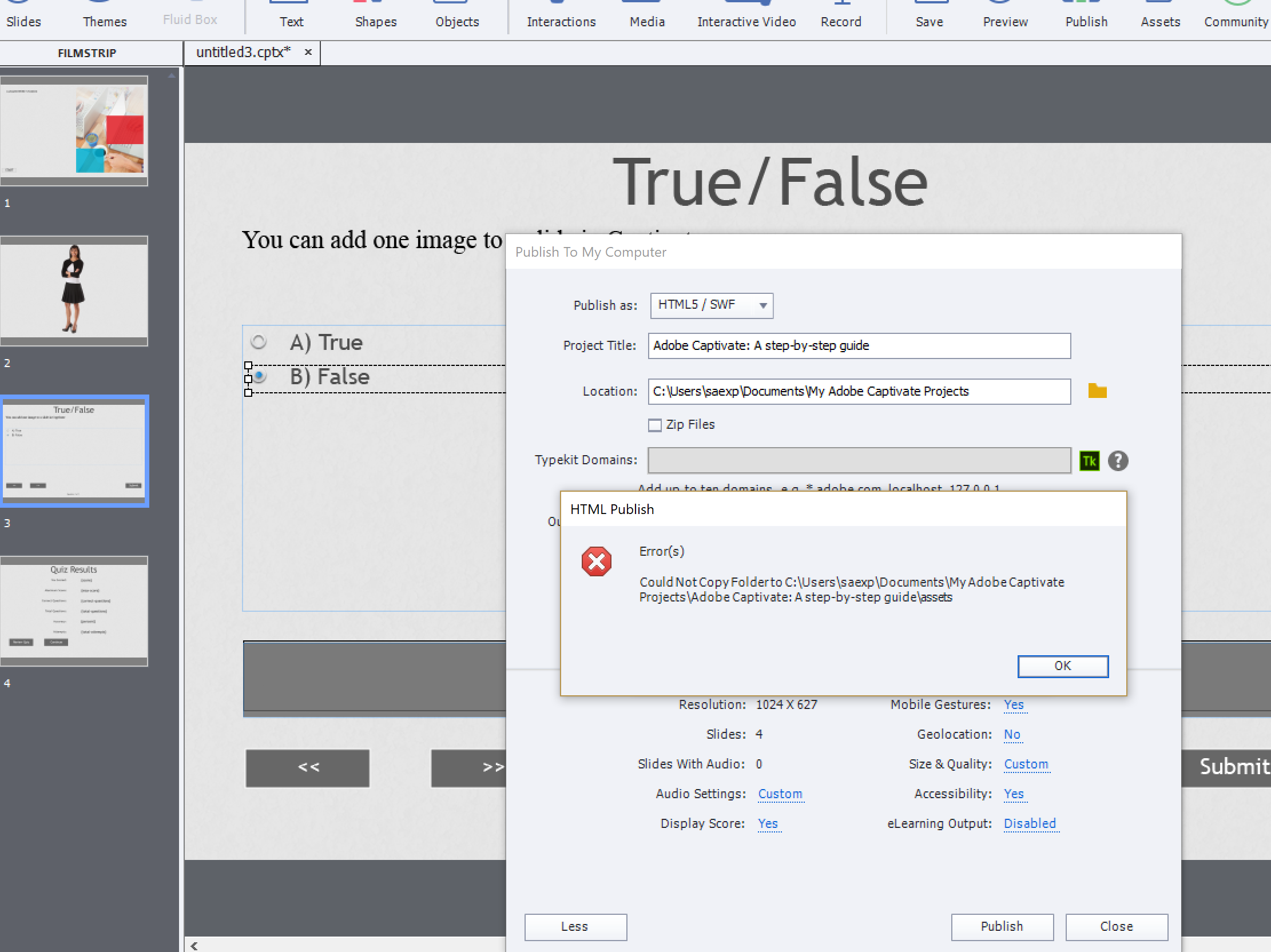 • captivate publish error 2