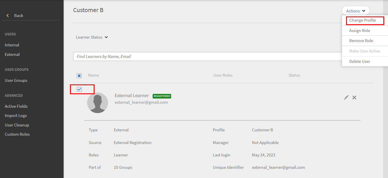• External user change of profile